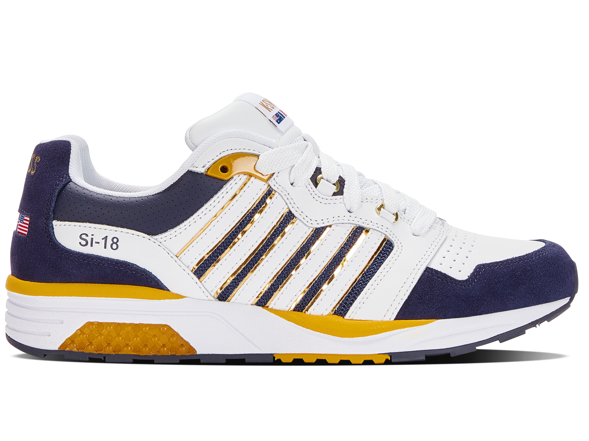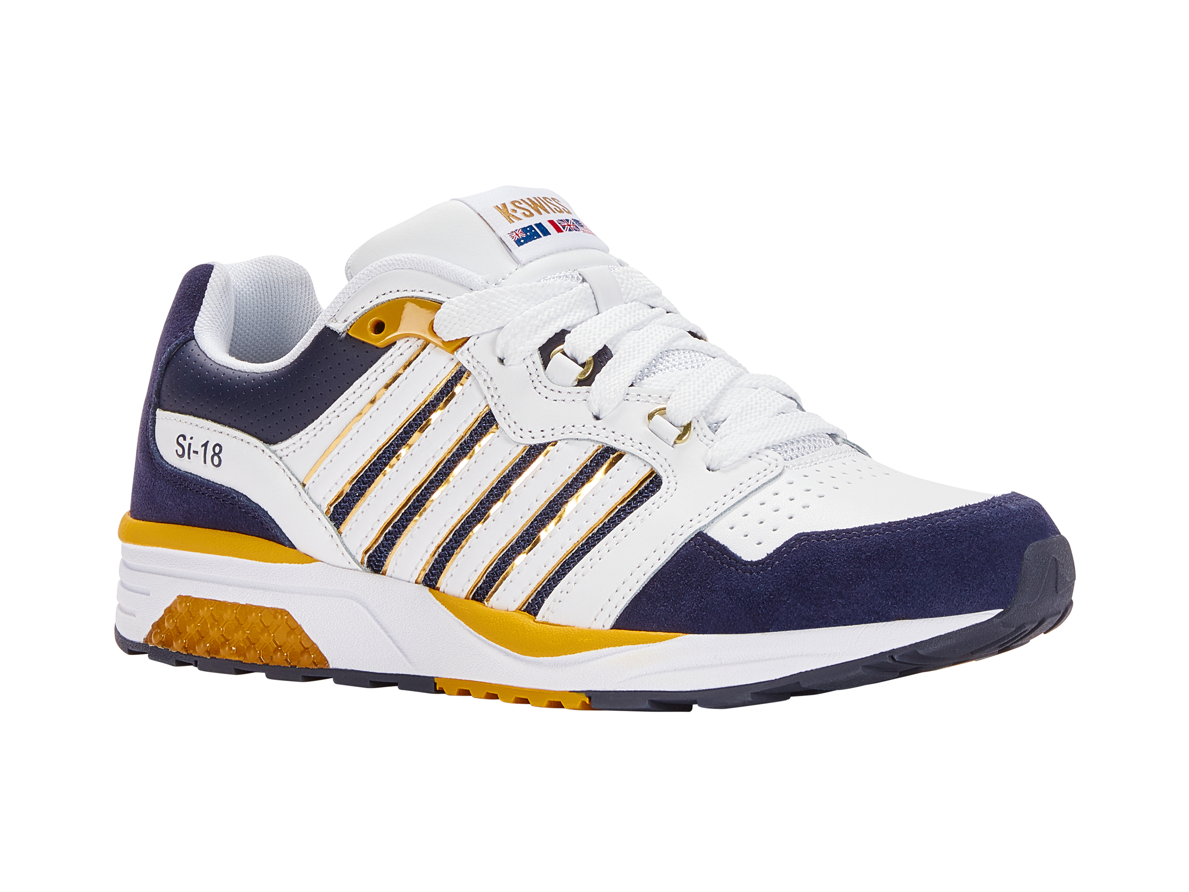 The Si-18 Rannell is an early 2000’s heritage bring-back from the archives of K-Swiss. Originally a cross training shoe with design elements from the Si-18 tennis shoe, the Si-18 Rannell was adopted by the free running and parkour community as its go to silhouette. Signature K-Swiss D-rings and molded TPU eyelets keep the fit secure, while the mono filament mesh quarter panels provide breathability. The Si-18 Rannell sits atop an EVA midsole with cushioned Si-18 TPU gel insert on the lateral side.
