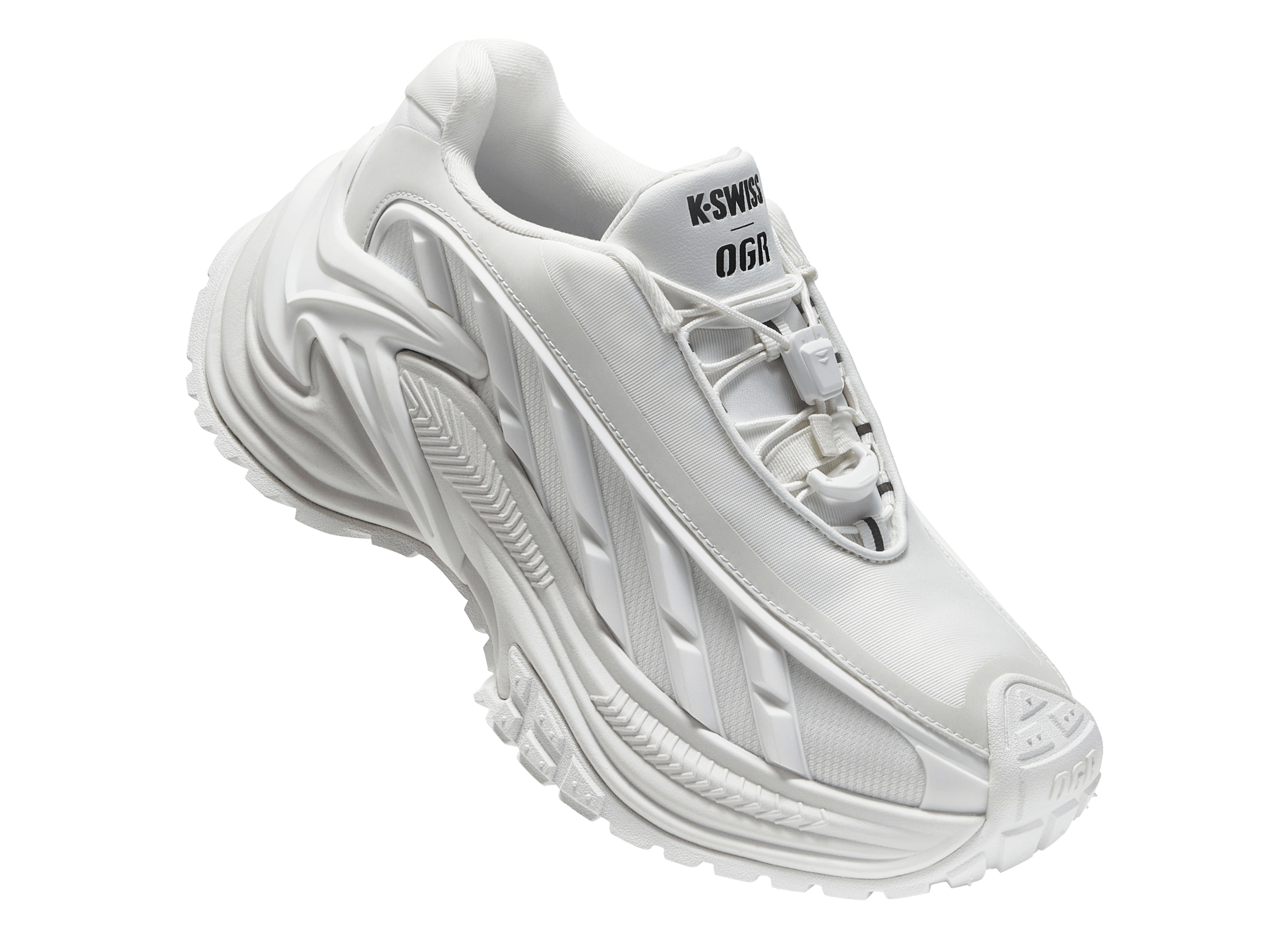 Step into the future with the limited-edition K-Swiss x OGR : Rattlesnake, an exceptional blend of futuristic design and trendsetting style. Designed to elevate your fashion game, this sneaker features an advanced 3D printing parametric aesthetic and a convenient spring-lock mechanism for ultimate ease. Blending K-SWISS’s classic designs with OGR’s unique industrial aesthetics, this series features cutting-edge structural lines and functional performance, making it a must-have for fashion-forward individuals. Available in sleek black and pure white, its durable anti-slip outsole ensures comfort and support.